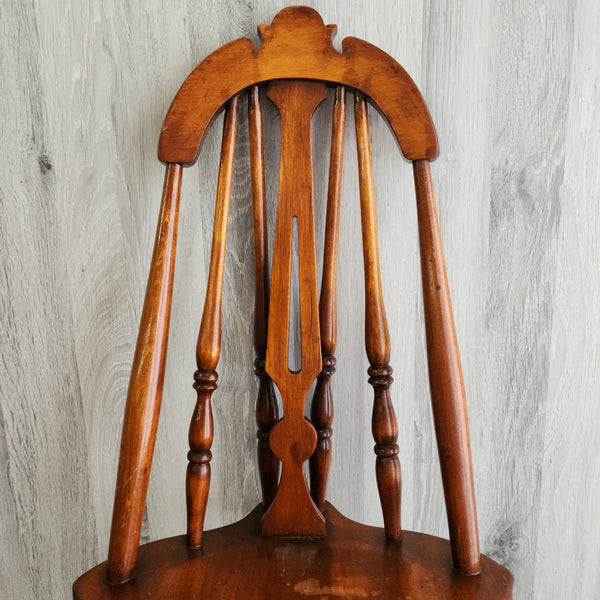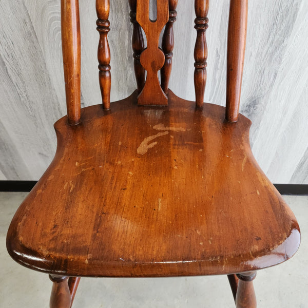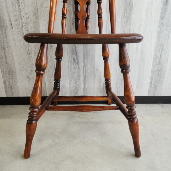 背もたれ中央に盾形の装飾を施した、クラシカルなデザインのウィンザーチェア。