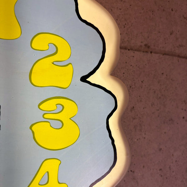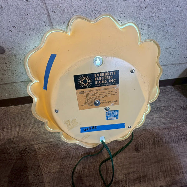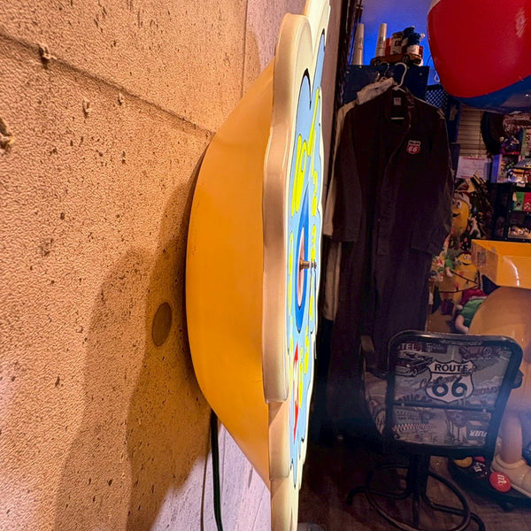 アメリカの人気炭酸飲料ブランド 7UP(セブンアップ) の、レアな EVERBRITE ELECTRIC SIGNS 復刻電飾クロック です。正方形で、存在感のあるデザインながら、ミッドセンチュリーを感じさせるレトロなフォルムと色使いが特徴です。水色の花のようなフレームに、黄色で描かれたレトロフォントの文字が映え、壁面に飾るだけでアメリカンヴィンテージの雰囲気を演出します。