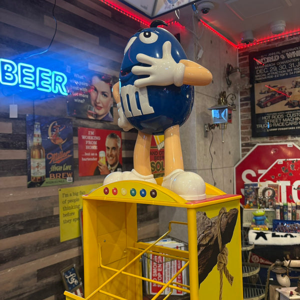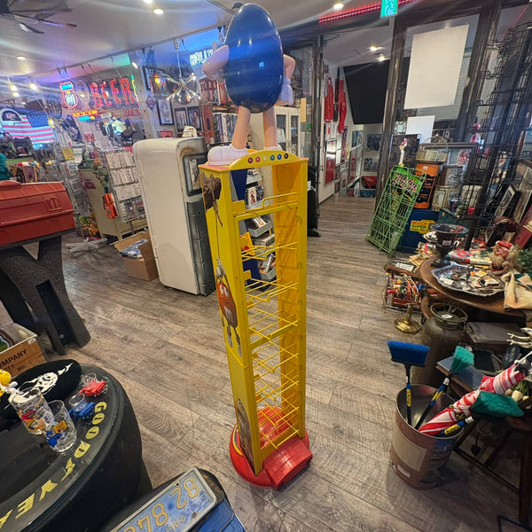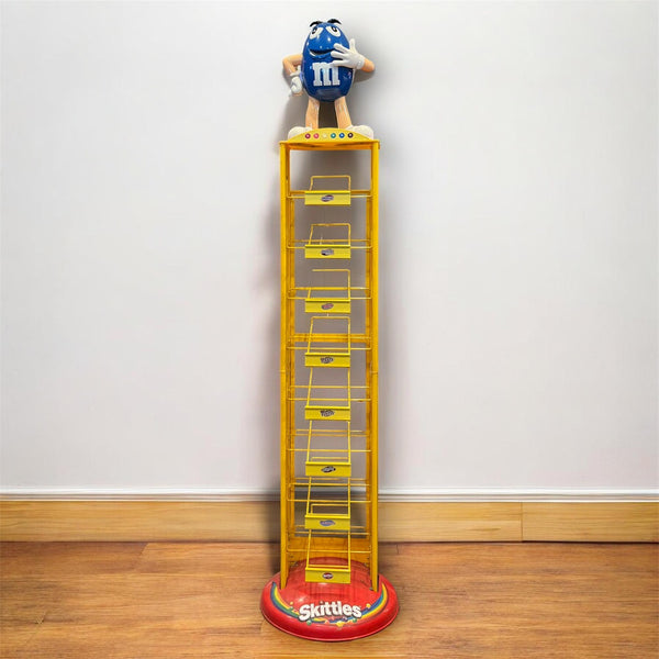 アメリカンキャンディカルチャーを象徴する M&M’sキャラクター と Skittlesロゴ が組み合わさった、非常にインパクトのあるフロアディスプレイラックです。トップにはおなじみのブルーM&M’sキャラクターが立体的に配置され、視線を一気に集める存在感抜群のデザイン。