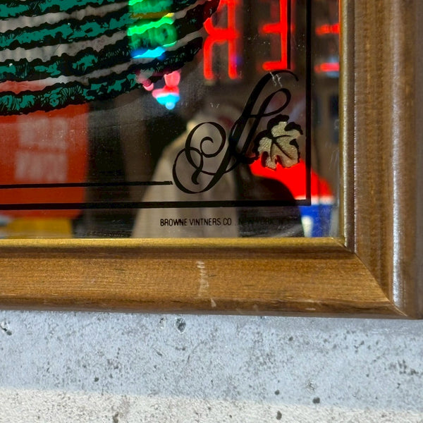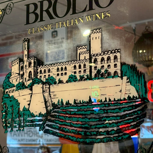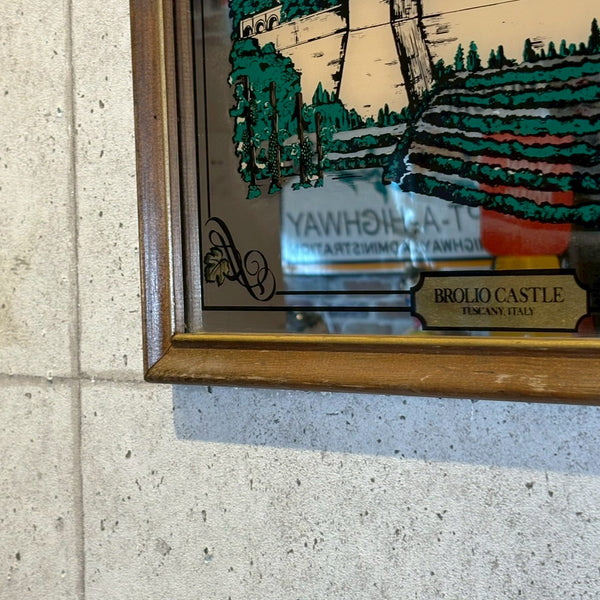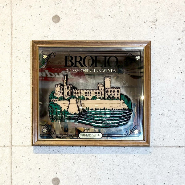落ち着いた気品と重厚感を感じさせる一枚。イタリア・トスカーナ地方の名門ワイナリー、BROLIOのヴィンテージパブミラーです。