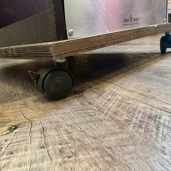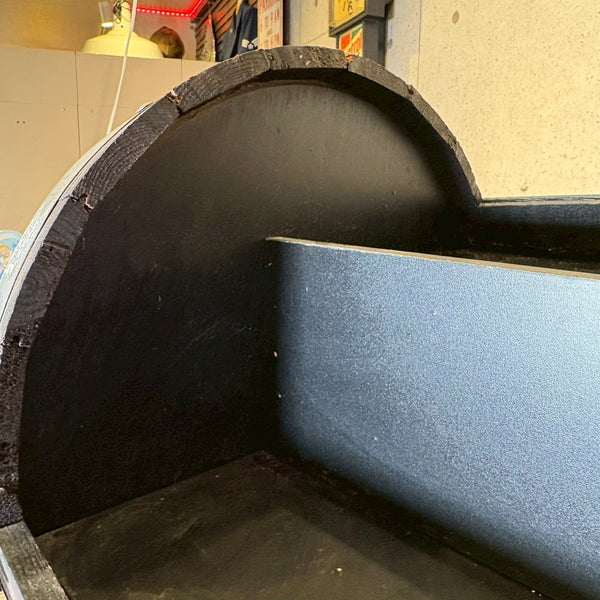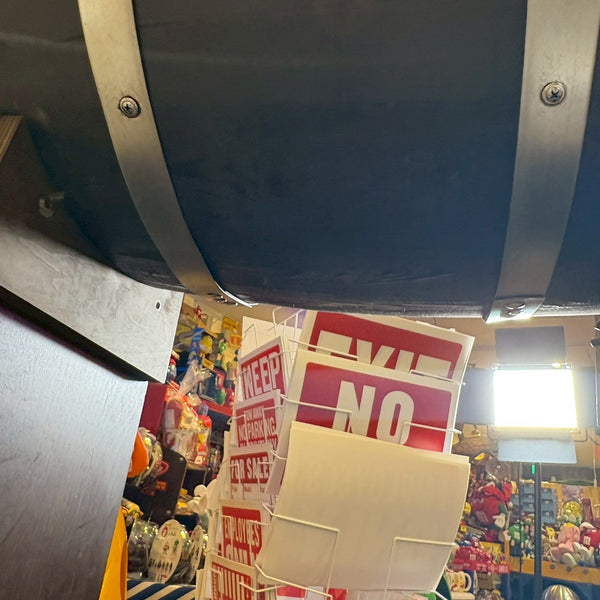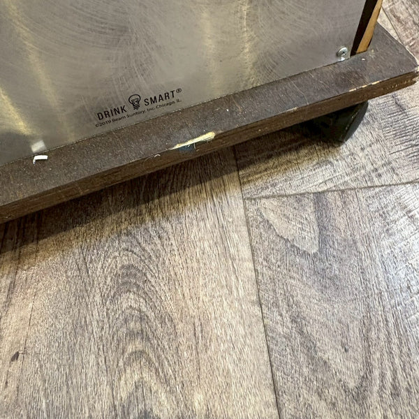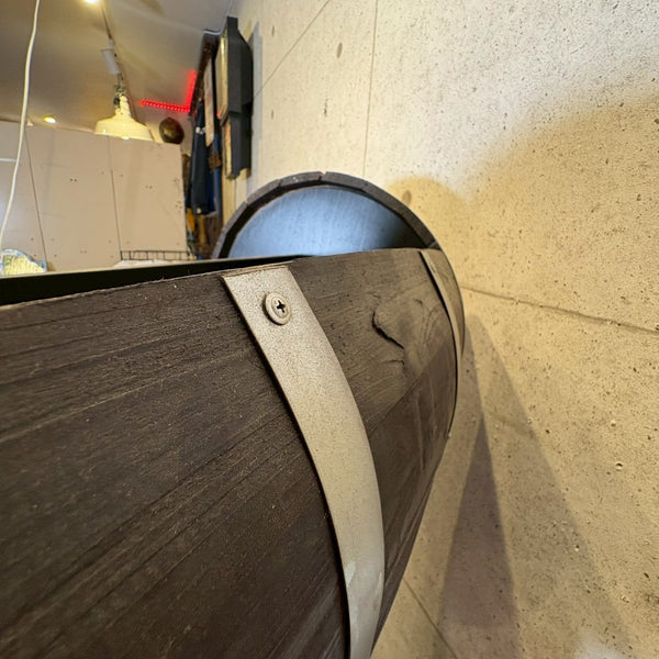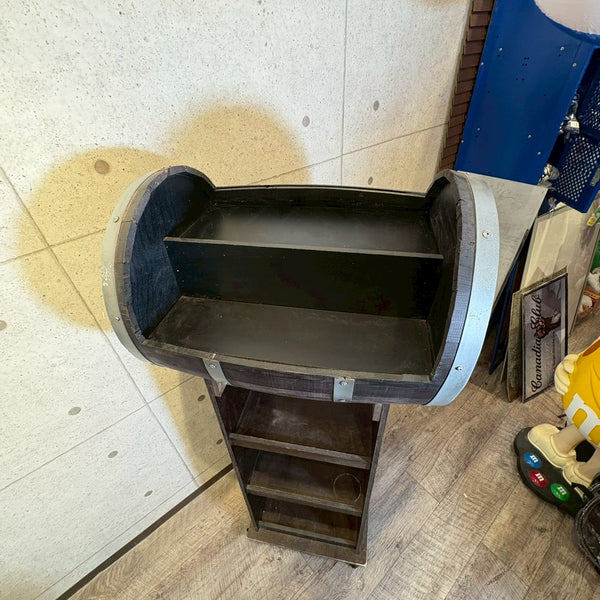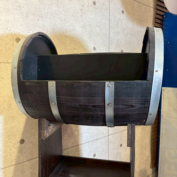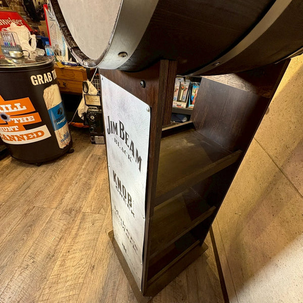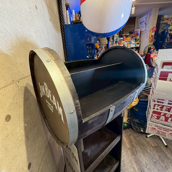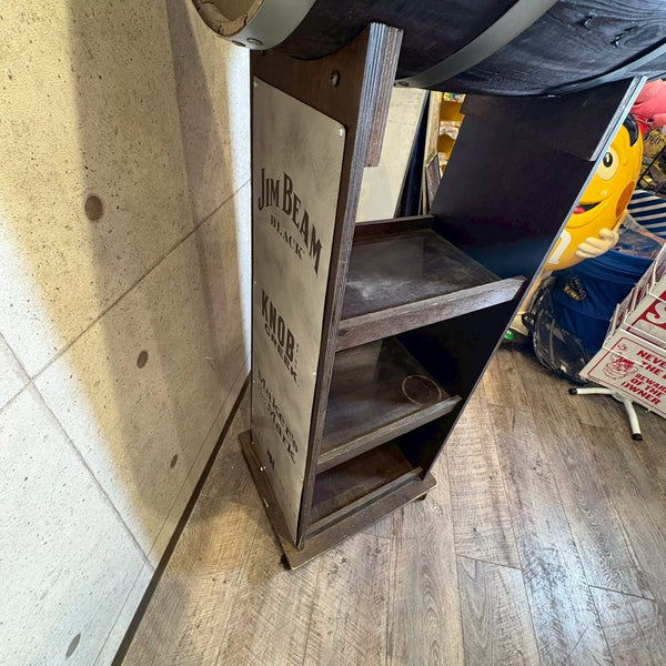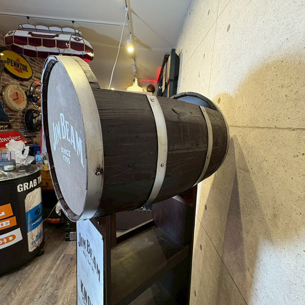 アメリカンウイスキーの代名詞「Jim Beam(ジムビーム)」を象徴する、ウッドバレル(樽)デザインのディスプレイラック。重厚感あるブラックウッドにメタルプレートを組み合わせ、ヴィンテージ感と無骨なインダストリアルテイストを兼ね備えた一台です。フロントには JIM BEAM BLACK / KNOB CREEK / Maker’s Mark / BASIL HAYDEN といった名門バーボンブランドのロゴを刻印。どれもケンタッキーの伝統を受け継ぐプレミアムバーボンで、アメリカンウイスキー文化の奥深さを感じさせます。店舗什器としてはもちろん、自宅バーコーナーやガレージのディスプレイにもぴったり。ボトルやグラス、バーボングッズを並べれば、まるで本場のバー空間を再現できます。キャスター付きで移動もスムーズ。ショップ・カフェ・バーの雰囲気づくりにもおすすめです。W61 × H155 × D45cm
