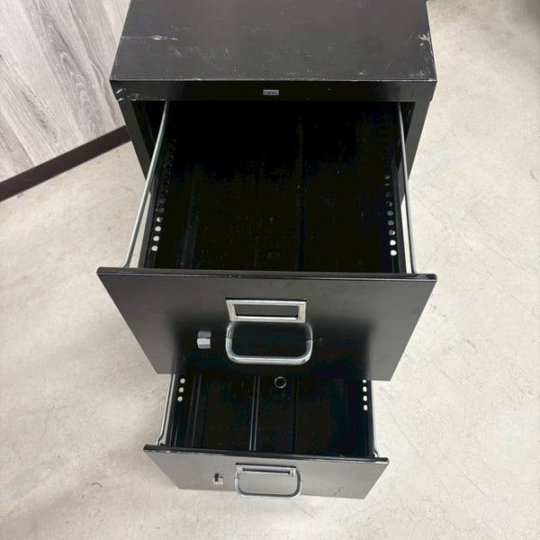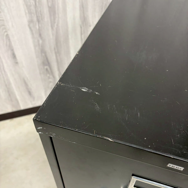 アメリカから輸入された、スチール製のヴィンテージ・ファイルキャビネット。こちらは取り回しの良い2段タイプで、コンパクトながらも実用性に優れた一台です。