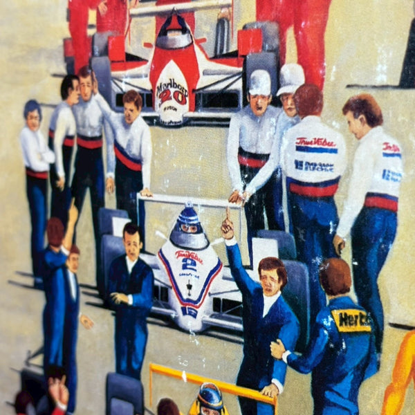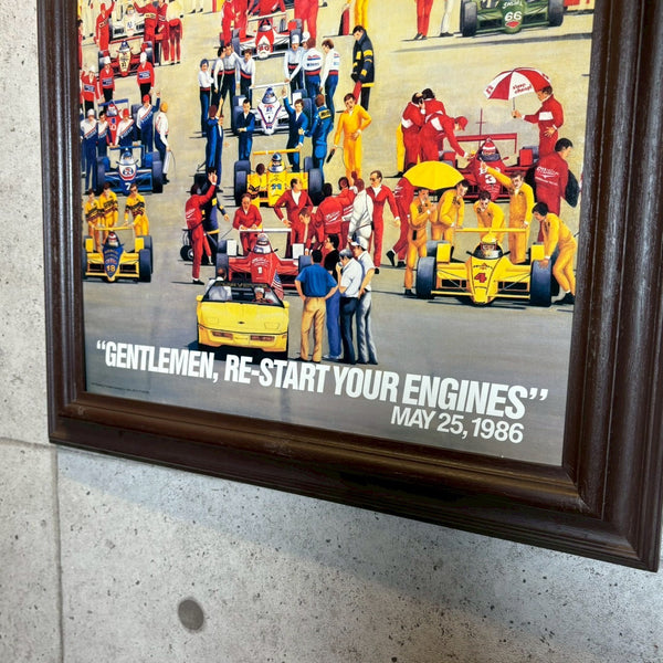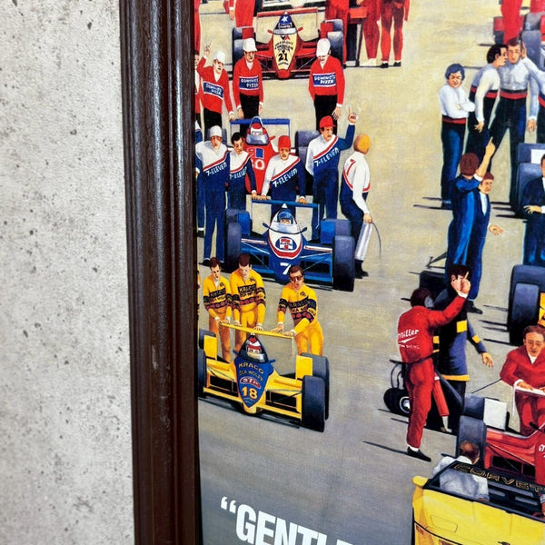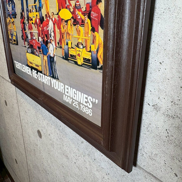 こちらは、1986年5月25日に開催された第70回インディアナポリス500マイルレースを記念した 「Miller American Racing」ヴィンテージポスター で、ポスターにはレースのピットエリアの様子が描かれ、多くの人々やレーシングカーが集まっている様子を確認できます。1986年のインディアナポリス500はアメリカのモータースポーツの中でも特に注目されたレースで、Miller Brewing Companyがスポンサーを務める「Miller American Racing」は象徴的なチームの一つとして知られていました。ダニー・サリバンがドライブした「#1 Miller American March/Cosworth」の優勝は、チームの栄光を象徴する瞬間であり、多くのファンに記憶されています。ポスターは、レースの興奮とチームの誇りを感じさせるデザインで、モータースポーツの歴史を愛する方々にとって、部屋のインテリアやコレクションアイテムとして最適です。また、1986年のインディ500を記念する貴重なアイテムとしても価値が高く、特に当時のレースやチームの記念品を探しているコレクターやファンにおすすめです。サイズは幅56cm、高さ70cm、奥行き3.5cmで、ヴィンテージ感を感じさせるデザインとなっており、長年の保管状態も良好です。このポスターは、モータースポーツの歴史を感じさせるだけでなく、インテリアとしても空間にアメリカンレーシングの魅力を加える一品です。