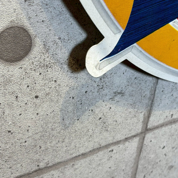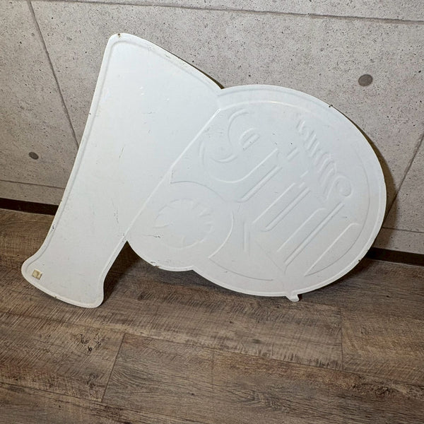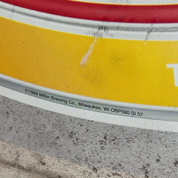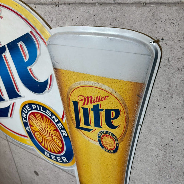 こちらは1999年製のMiller Lite(ミラーライト)看板で、丸いMiller Liteのロゴのサイドに、水滴のついたビールグラスに注がれたライトビールが描かれたデザインが特徴です。グラスの冷たさや泡のきめ細かさまで表現され、見ているだけで爽快な飲み口を想像させる、躍動感あふれるデザインとなっています。