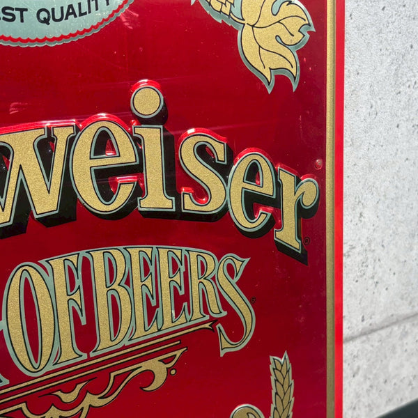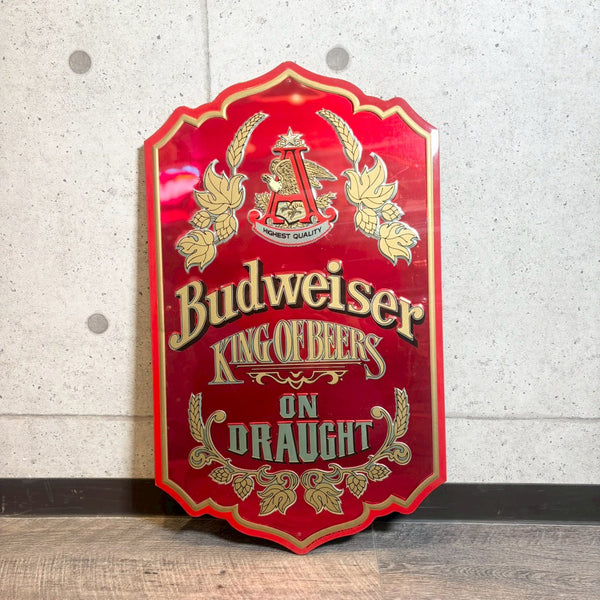アメリカを代表するビールブランド Budweiser(バドワイザー) の「KING OF BEERS」「ON DRAUGHT」のロゴを大きく配した、存在感のあるヴィンテージサインボードです。