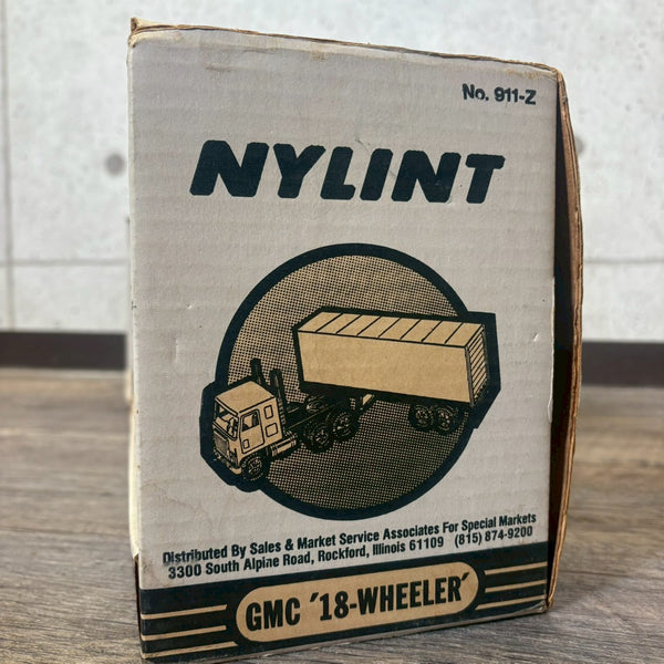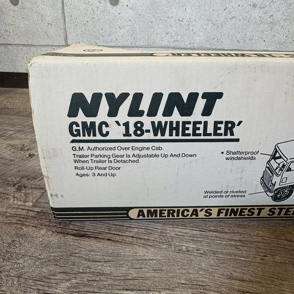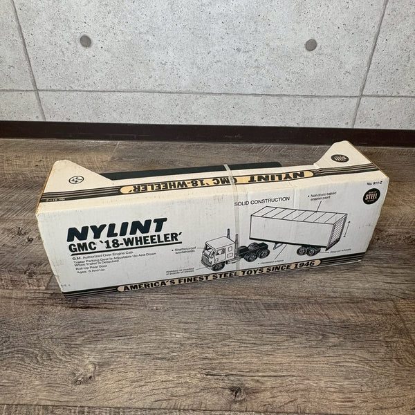 NYLINTは1937年にイリノイ州で設立された老舗玩具メーカーで、トラックやバスなどのミニチュア車両を中心に製造していました。当時の製品は耐久性と精巧な造形が特徴で、コレクターズアイテムとしても非常に人気があります。このGMC 18 Wheelerも例外ではなく、ヴィンテージ玩具としての重厚感とアメリカンテイストを楽しめる一点ものです。