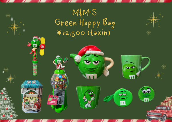 【カラー:GREEN】M&M‘s缶、ミニキャンディーディスペンサー、ミニバケツ、ハンディートイ、ラバーコインケース、缶バッチ、陶器ティーポット、マグカップ計8点