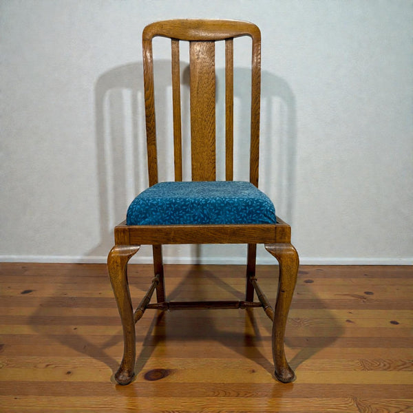フレームには、しっかりとした硬木材が使用されており、脚部は前方に美しい曲線を描くクラシックなフォルム。装飾性と安定感を両立した構造で、ダイニングチェアとしてはもちろん、書斎やエントランス、ショップの什器としても映える一脚です。