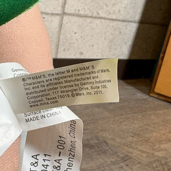 M&M'sキャラクターがデザインされた、存在感抜群のヴィンテージドール。サンタ帽をかぶったグリーンキャラクターが印象的で、クリスマスシーズンらしい華やかな雰囲気を楽しめるアイテムです。