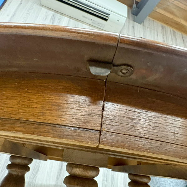 通常時はコンパクトで圧迫感がなく、来客時や食事人数が増えた際には天板を広げることでゆとりあるダイニングスペースを確保できます。アメリカ家具ならではのしっかりとした作りと、長く使うことを前提とした構造が魅力です。