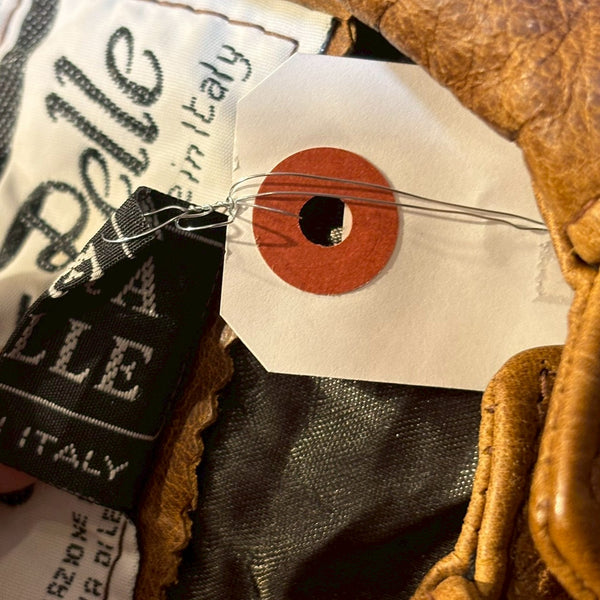 こちらは VERA PELLE(本革) 表記入りの、イタリア製レザーアイテムです。“VERA PELLE” とはイタリア語で「本物の革」を意味し、イタリア国内で基準を満たした天然皮革製品に用いられる表記です。大量生産の合成皮革とは一線を画す、経年変化を楽しめるリアルレザーならではの質感が魅力です。