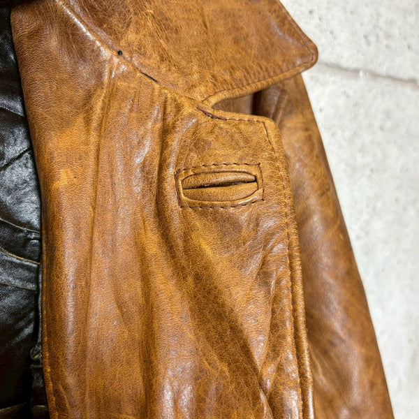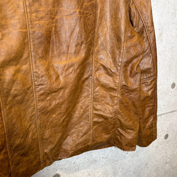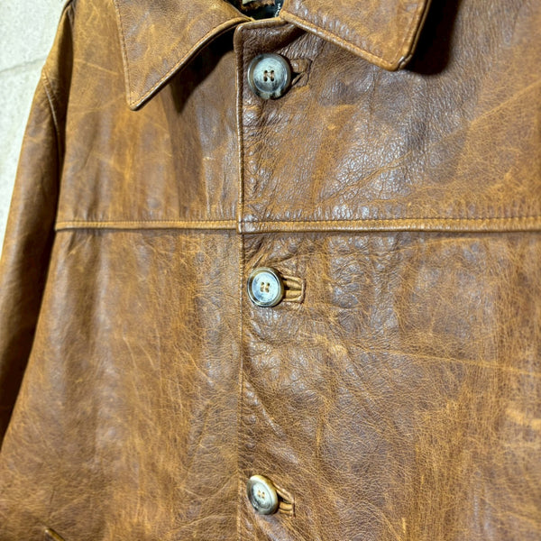 サイズ感は約着丈 76cm 肩幅 49cm 袖丈 67cm 胴囲 110cm程よくゆとりのあるバランスで、厚手のニットやスウェットの上からでも羽織れる実用的な設計。シルエットはクラシックでありながらも野暮ったさがなく、デニムやスラックスとも相性の良い万能な一着です。