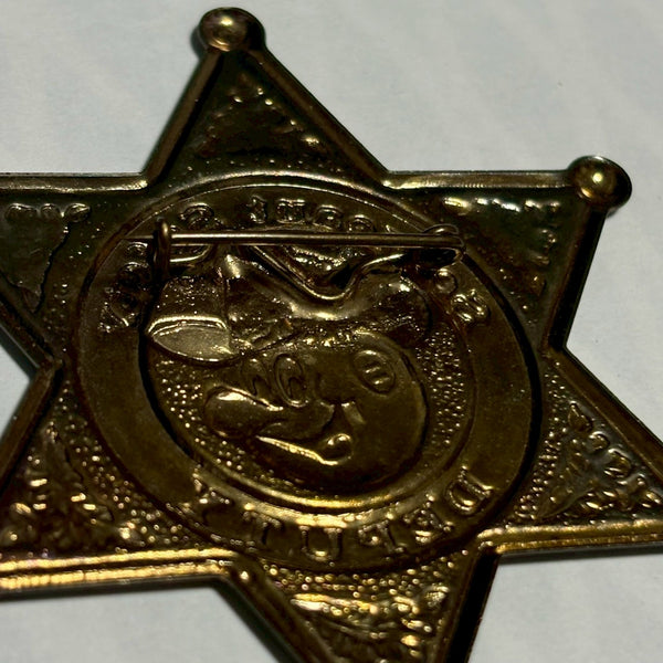 こちらは、レディ・キロワットをモチーフにしたウエスタンバッジです。直径約6.5cmと程よいサイズ感で、存在感がありながらも主張しすぎず、身に着けてもディスプレイしても楽しめるアイテムです。ウエスタン調の縁取りデザインが、アメリカンヴィンテージらしい空気感を一層引き立てています。