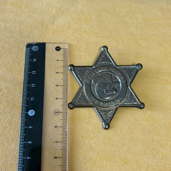 このウエスタンバッジは、当時のアメリカで流行していたカウボーイや西部劇文化の影響を感じさせるデザインと、企業マスコットであるレディ・キロワットを組み合わせた、時代性のある一品です。産業やテクノロジーの象徴であるキャラクターと、アメリカ的イメージの強いウエスタンモチーフが融合しており、単なる装飾品以上のストーリー性を持っています。