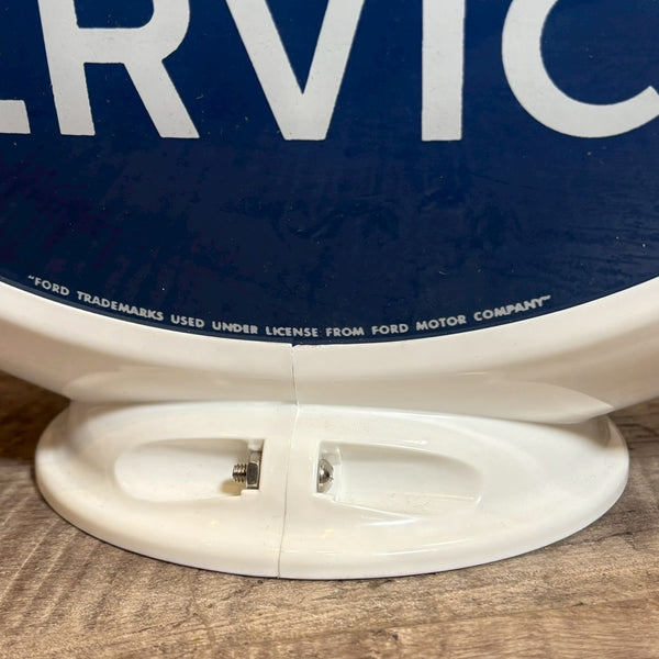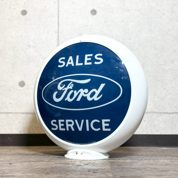 かつてアメリカのFord Motor Company正規ディーラーで使用されていたサインデザインを忠実に再現した、「Ford Sales & Service」ガスポンプグローブ(ガラス製)です。