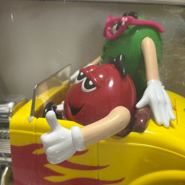 1950年代のアメリカンカルチャーを象徴するホットロッドスタイルのクラシックカーをモチーフにしたデザインで、当時のロックンロールや若者文化をイメージさせる遊び心のあるアイテムです。車にはサングラスをかけたクールな Red (M&M's character) が運転席に座り、後部座席にはセクシーで人気のキャラクター Green (M&M's character) が乗っている、ファンにはたまらないデザインになっています。