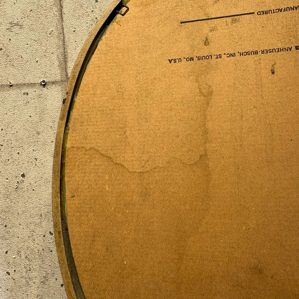 本品は、そんなカールスバーグの豊かな歴史を感じさせるパブミラー(酒場用装飾ミラー)で、ヨーロッパのバーやパブの壁面を飾っていたディスプレイ用アイテムです。鏡面の反射と金文字のロゴが美しく調和し、クラシックな雰囲気を漂わせます。