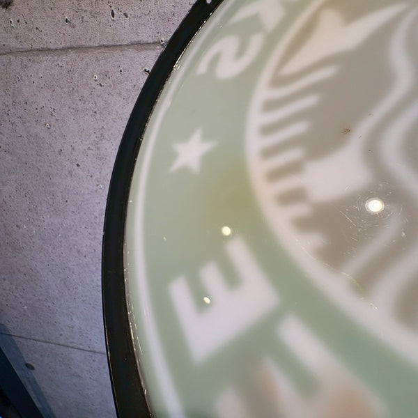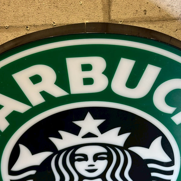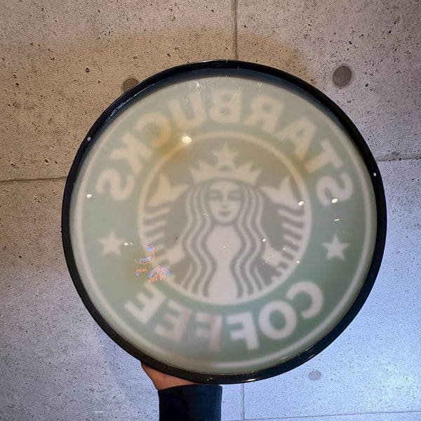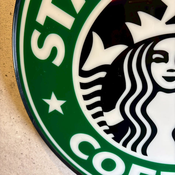 世界的コーヒーブランド Starbucks(スターバックス) の円形プラスチック看板です。 のコンパクトながら存在感のあるサイズで、円形に配置されたロゴが視覚的に印象的なデザインとなっています。ブランドアイコンであるサイレンのロゴを大胆にあしらい、カフェやショップの壁面を彩る装飾品としても最適です。