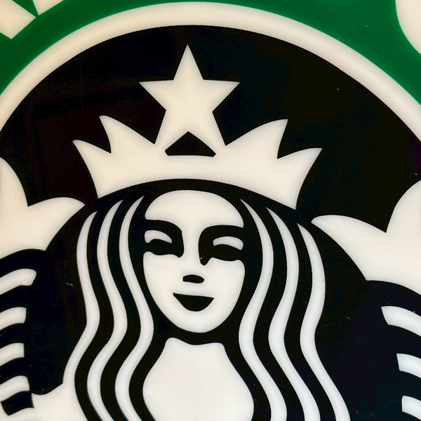本品は、店舗装飾用として制作されたプラスチック看板で、軽量かつ丈夫な素材を用いているため、壁掛けやディスプレイ棚に置いても安全に使用可能です。カフェのインテリアやホームコーヒーバー、コレクション棚に置くことで、空間にスターバックスらしい雰囲気とヴィンテージ感をプラスできます。