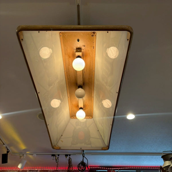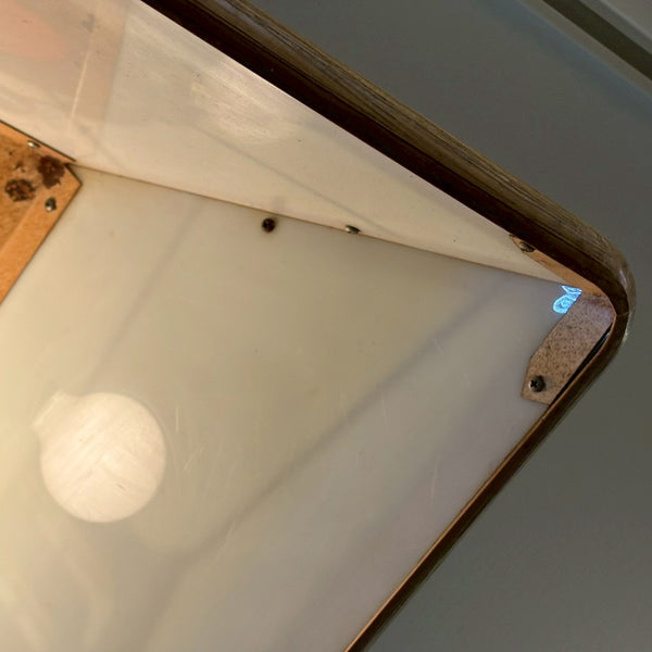 ヴィンテージならではの雰囲気を楽しめる、アメリカンカルチャーを感じさせるディスプレイアイテムとしてもおすすめの一品です。※真ん中の電球は写真では切れてますが付け替えると点灯いたします。一部クラックあり(フレームの角が一カ所割れています。目立ちませんが写真いてご確認ください。)