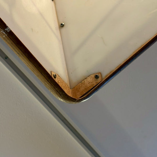 こちらはビリヤード台の上に吊り下げて使用する照明で、横長のシェードにブランドロゴがデザインされた存在感のあるアイテムです。シェード部分には樹脂やプラスチック素材が使用されており、木目調のデザインが温かみのある雰囲気を演出しています。電球を取り付けて点灯する仕様で、付属のチェーンで天井から吊り下げて設置することができます。