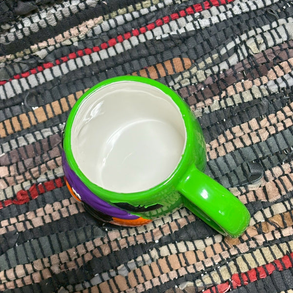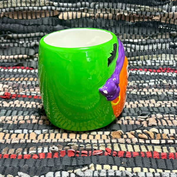 陶器製のため適度な重量感があり、マグカップとしての安定感も確保されています。カップ側面にはコウモリのモチーフが施されており、全体としてハロウィンらしい世界観を演出しています。