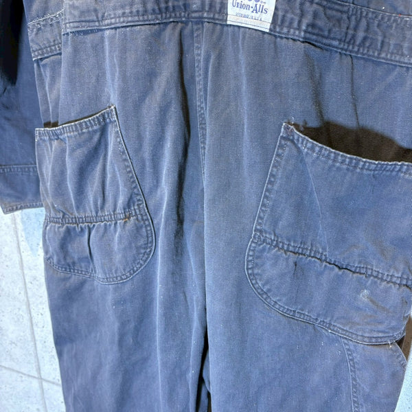 深みのあるチャコールグレーのコットンツイル生地は、着込みによる自然なフェード感が美しく、“UNION MADE IN U.S.A.” タグが残る本格的なワークウェア。