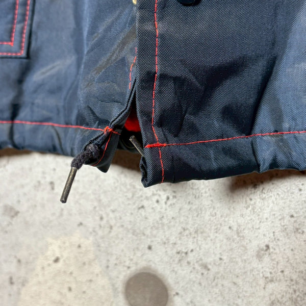 表地には耐久性のあるナイロン素材が使用されており、軽量で動きやすく、当時のスポーツウェアやチームウェアの雰囲気を感じさせる仕上がりとなっています。コーチジャケット特有のラフな着心地も魅力で、デイリーに取り入れやすいアイテムです。