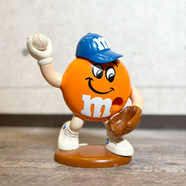 M&M'sキャラクターがデザインされた、遊び心あふれるヴィンテージディスペンサー。ベースボールをモチーフにした躍動感のあるポーズが印象的で、スポーティーかつポップな雰囲気を楽しめるアイテムです。