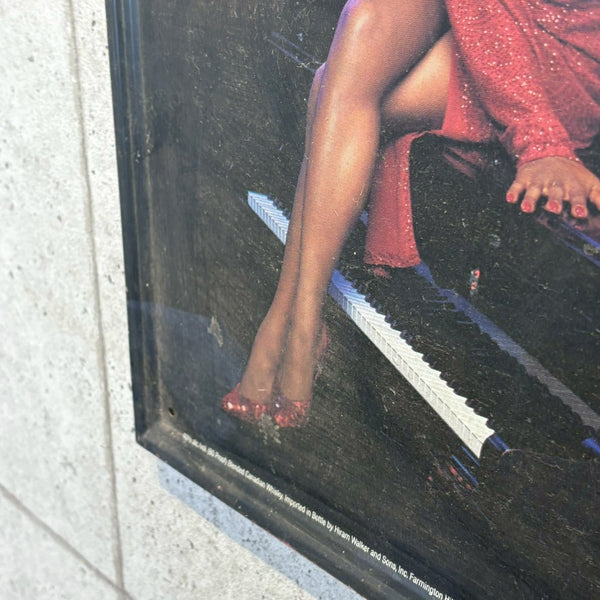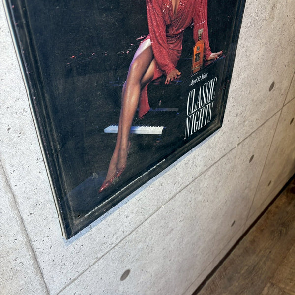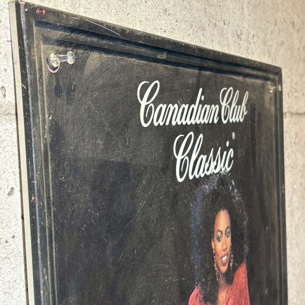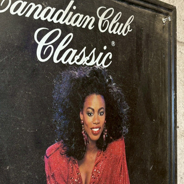 こちらは1989年製のCanadian Club Classic Nightの看板で、中央には洗練された女性が描かれ、黒を基調としたデザインがクラシックで落ち着いた印象を与えます。Canadian Clubは1858年にカナダで創業された老舗ウイスキーブランドで、長い歴史の中でプレミアムスピリッツとして世界中に知られる存在となりました。その上品で滑らかな味わいと、クラシックなデザインは、ブランドの伝統と格式を象徴しています。