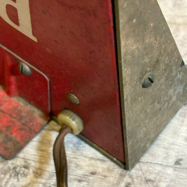アメリカを代表するビールブランド BUDWEISER(バドワイザー) のデスクランプです。赤いメタルフレームに、透明アクリル板に描かれたブランドロゴが組み合わさったデザインで、卓上に置くだけで存在感のあるアクセントになります。コンパクトながら、ビールブランドならではの鮮やかなカラーとロゴが目を引く一品です。