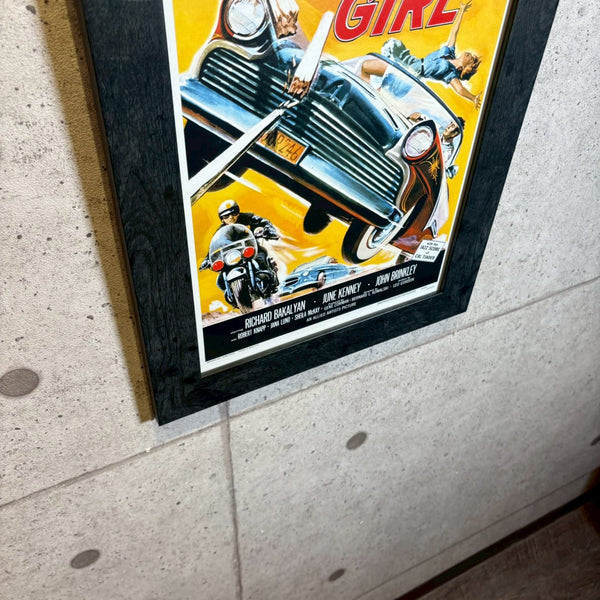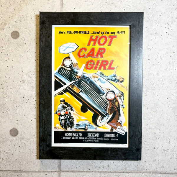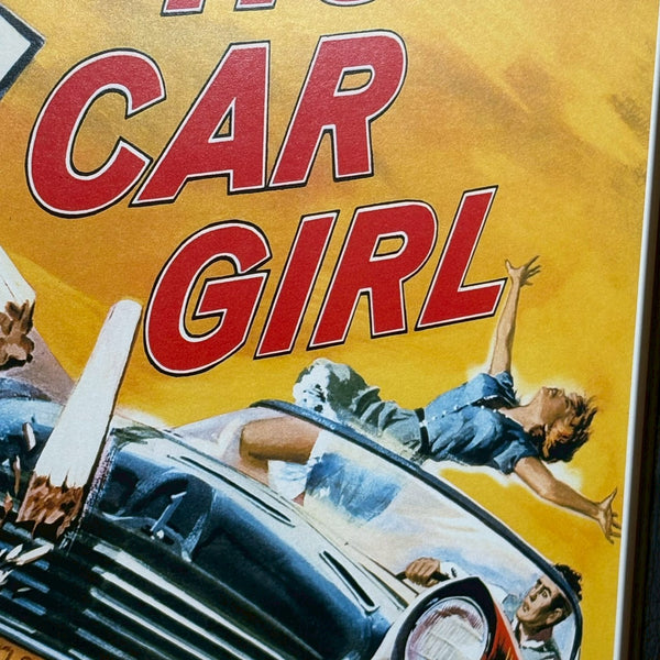 1958年公開、ホットロッド映画全盛期の中でも、スピードと若者文化の裏側にある危うさを描いた異色作『Hot Car Girl(ホット・カー・ガール)』 の額装ポスターです。50年代ティーンムービーの華やかさの陰で進行していた、反抗・犯罪・道徳観の揺らぎを映し出した、時代の転換点を感じさせる作品です。