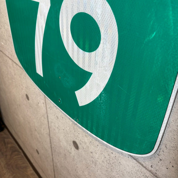 こちらは、カリフォルニア州道79号線(State Route 79)のヴィンテージ道路標識です。サイズは幅60cm、高さ61cmで、カリフォルニア州道を象徴するグリーンを基調に、白文字で「CALIFORNIA 79」と描かれたクラシックなデザインが特徴的です。丸みを帯びた州道シールドのフォルムは、アメリカ西海岸の道路文化をそのまま感じさせる存在感があります。