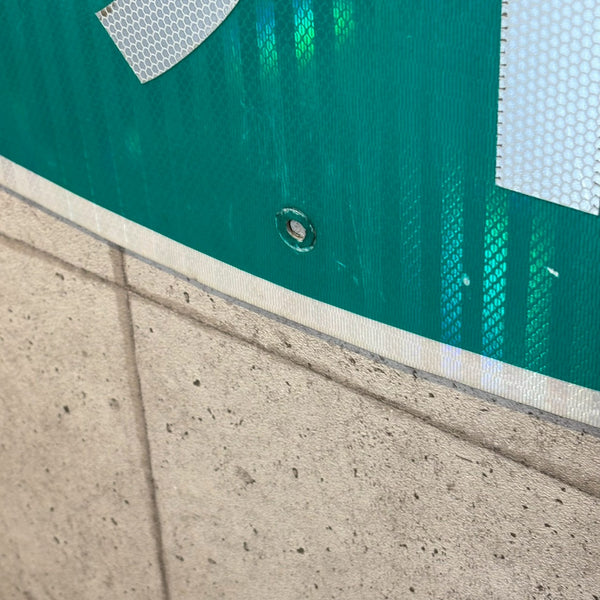 この標識は、そうした幹線道路沿いで実際に使用されていたもので、アメリカ西海岸の交通文化や時代の流れを感じさせる貴重なアイテムです。現在では、アメリカンヴィンテージやインダストリアルスタイルのインテリアを好む方に人気が高く、カフェやショップのディスプレイ、ガレージのアクセント、または自宅のインテリアとしても存在感を発揮します。カリフォルニアの青空とともに人々の旅路を見守ってきたサインは、空間にリアルなアメリカの空気感をもたらします。