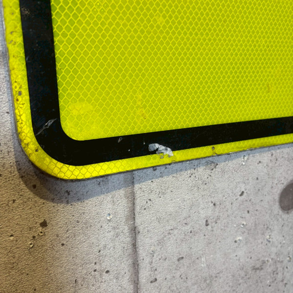 こうした標識は、1950〜1980年代のアメリカ各地で広く使用されており、特にハイウェイや郊外道路では、夜間でもライトに反射して見えるよう特殊な塗料や素材が用いられていました。この看板も当時実際に設置されていたもので、年月を経た表面の擦れや色褪せがリアルな使用感を伝えています。