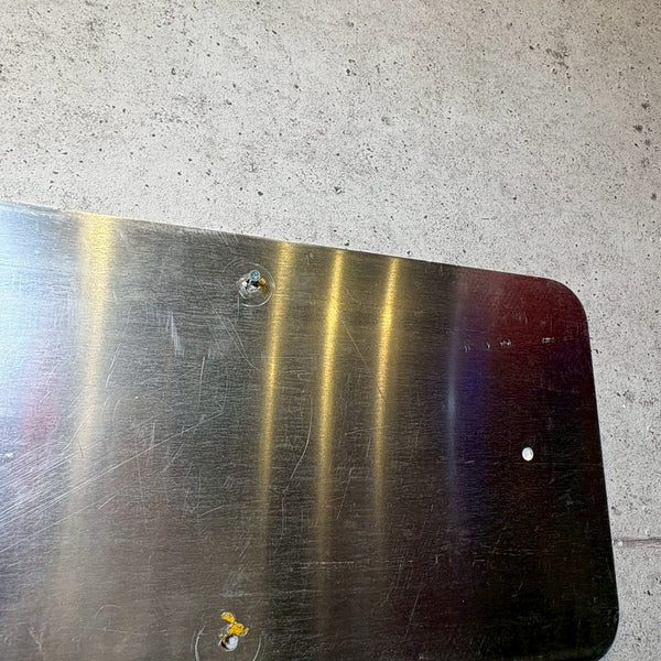 こうした誘導標識は、1950〜1980年代にかけてアメリカ各地で多く使用され、特にハイウェイの出口付近や工事エリア、カーブの手前などに設置されていました。現在では素材の改良が進み、反射式の新型標識に置き換えられていますが、このようなメタル製サインには、当時のアメリカの道路文化やデザイン思想が色濃く残されています。表面に見られるわずかな傷や色あせも、実際に屋外で活躍していた証であり、リアルな存在感を引き立てています。