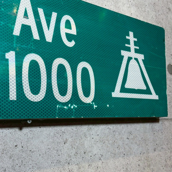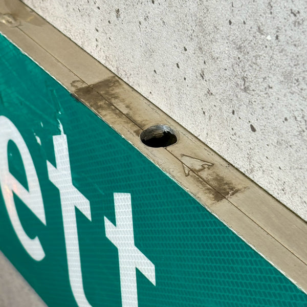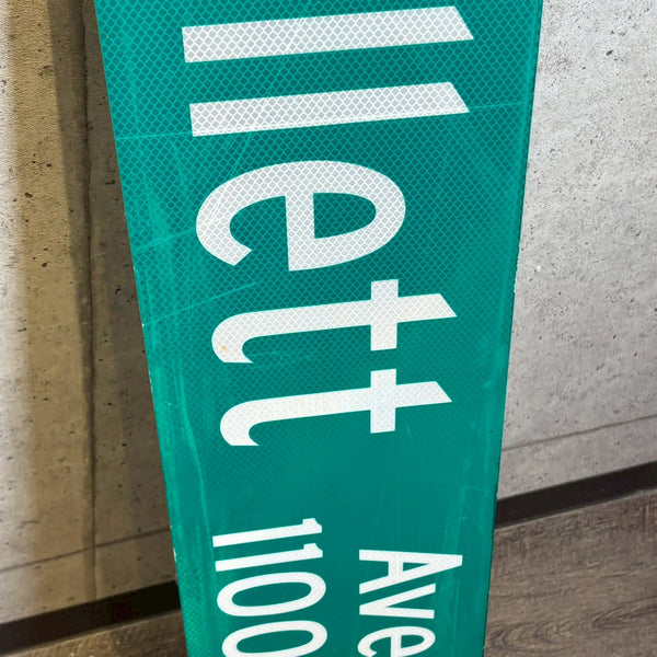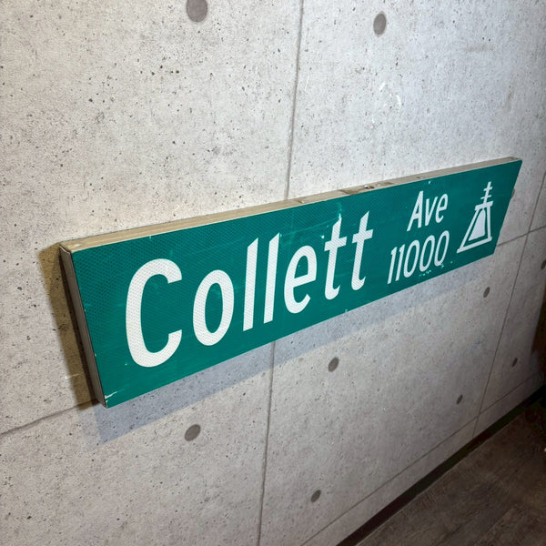 こちらは、アメリカ・カリフォルニア州グラナダヒルズのCollett Ave沿いに実際に設置されていた、「Collett Ave 11000」の道路看板です。しっかりとした作りで、真ん中にポールを通すための穴が開いており、立体的なデザインが特徴です。