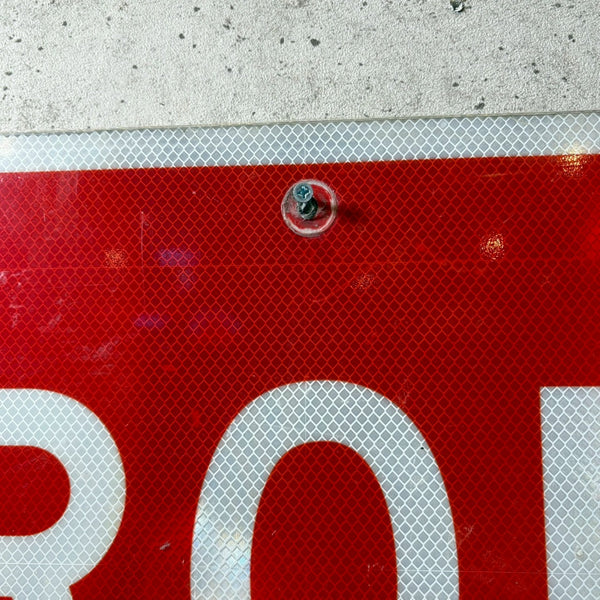 現在では、ガレージやバー、カフェ、ショップなどのインテリア装飾として人気があり、アメリカンヴィンテージや道路標識コレクションとしてもおすすめです。赤地の強い存在感と交通標識特有のデザインは、空間に無骨でリアルなアメリカの道路文化の雰囲気を演出します。特に、アメリカンカルチャーやヴィンテージアイテムに興味のある方に適した一枚です。